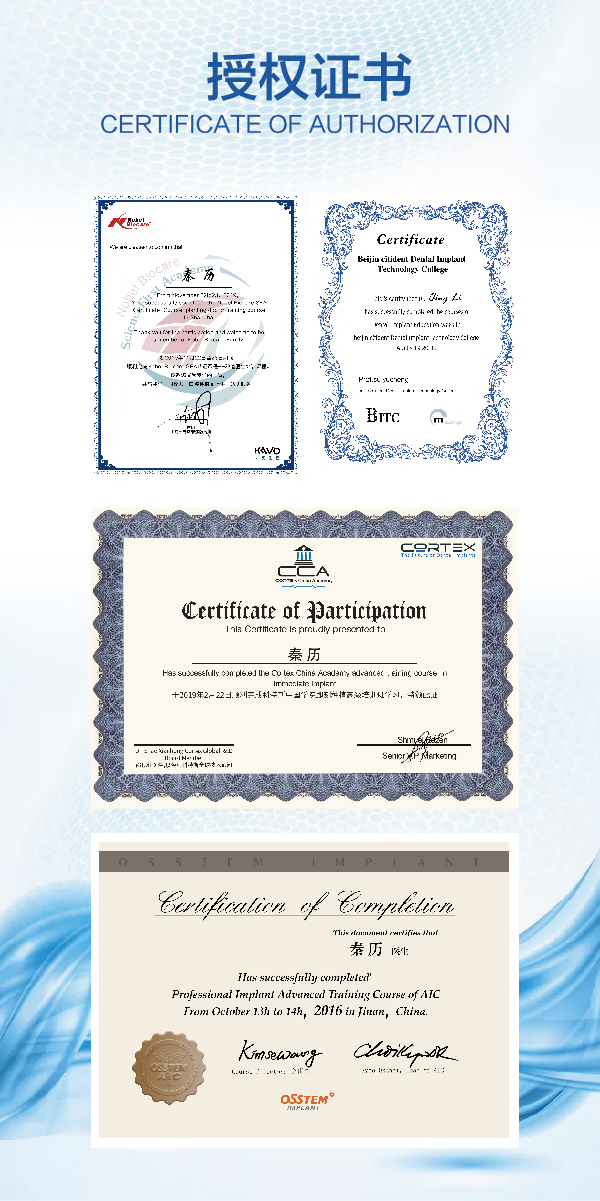 毕业于解放军第四军医大学口腔正规,曾在牙科口腔工作,从事口腔诊疗工作十余年,多次参加国内外学术交流会,积极学习国内一线的口腔知识,并在临床中积极运用,为顾客制定个性化方案。积累了丰富的临床工作经验,深受顾客好评。